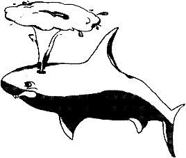 上圖:須鯨       沒有牙齒;呼吸時噴出的水柱又高又直