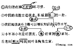 用修改符號(hào)修改病句。①我們要改掉不好的壞習(xí)慣。②中國的名勝古跡