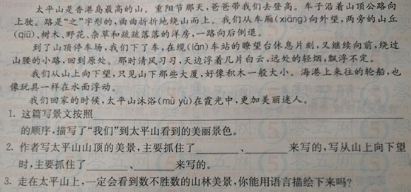 3.走在太平山,一定會看到數(shù)不勝數(shù)的山林美景,你能用語言描繪下來嗎?