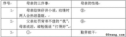 小題4:.選文第⑥段提到“她的可愛的性格,她的努力的精神,她的能干的才具,都埋沒在封建社會的一個家族里,都葬送在沒有什么意義的事務上”。在我看來“母親”在作者的成長中具有非凡的意義,請結合原文具體談談。(3分)