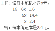解決問題第一題不是這個是小東有六本筆記本,付給營業(yè)員16元,找回1.6元。沒本筆記本是多少元用方程解答