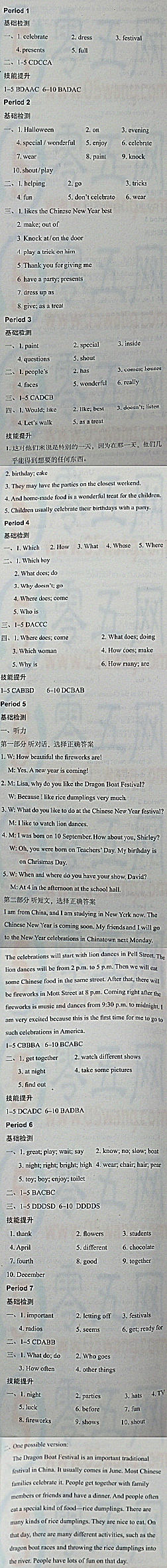 初一七年級上冊英語Unit5 Let's celebrate課課練答案(配譯林版)