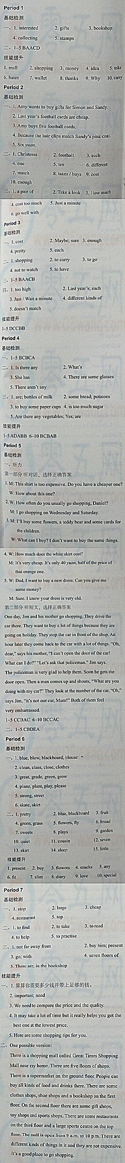 初一七年級(jí)上冊(cè)英語(yǔ)Unit7 Shopping課課練答案(配譯林版)