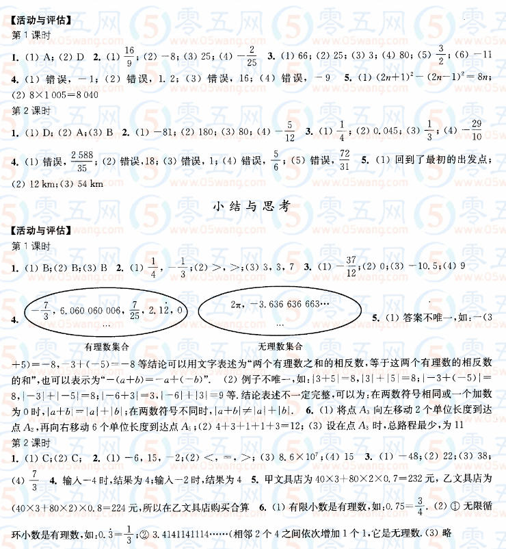 2.8有理數(shù)的混合運(yùn)算學(xué)習(xí)與評價答案