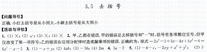 3.5去括號(hào)學(xué)習(xí)與評(píng)價(jià)答案