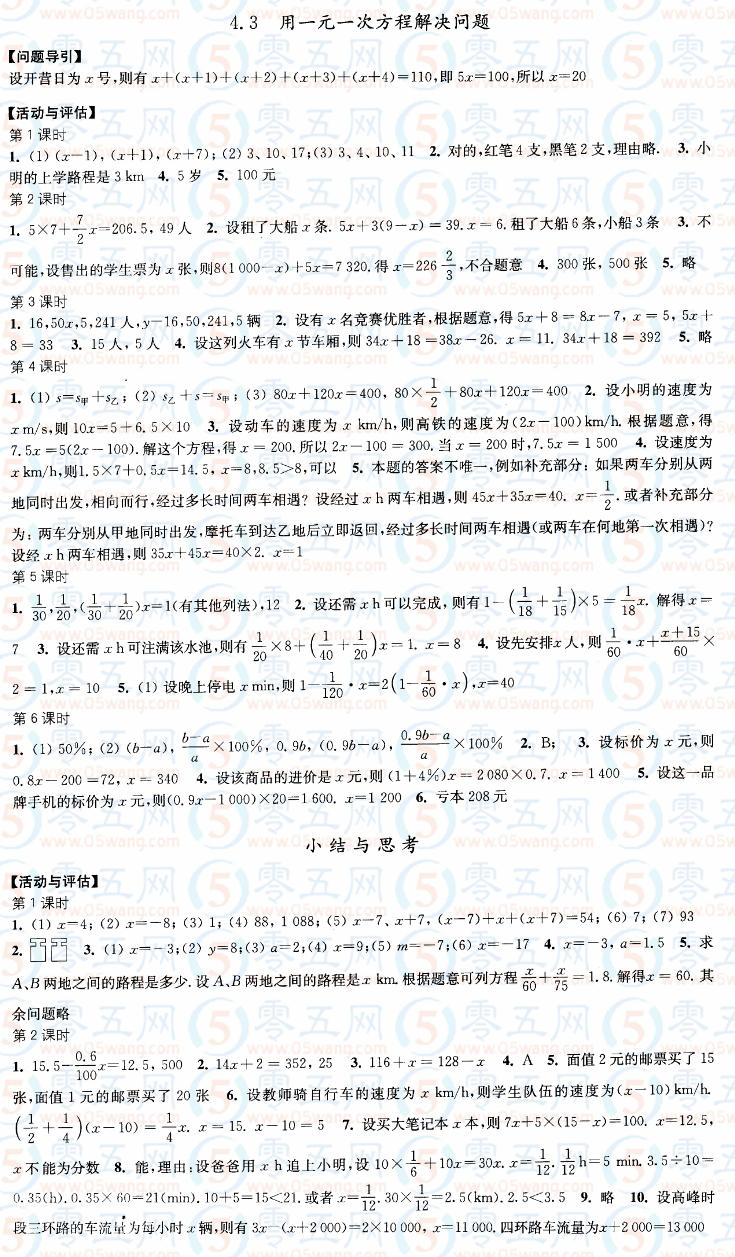 4.3用一元一次方程解決問(wèn)題學(xué)習(xí)與評(píng)價(jià)答案