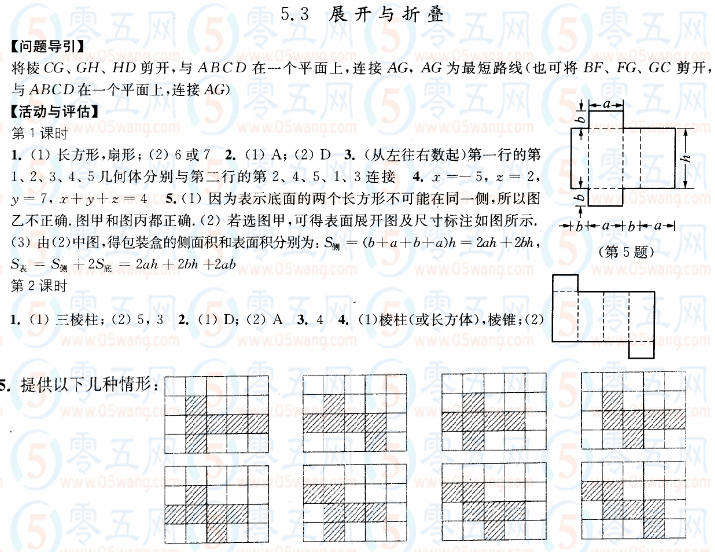 5.3展開與折疊學(xué)習(xí)與評價答案