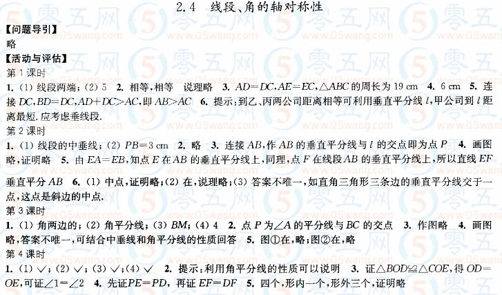 2.4線段、角的軸對(duì)稱學(xué)習(xí)與評(píng)價(jià)答案