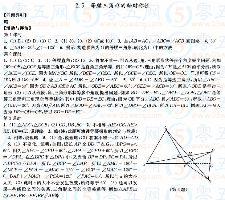 2.5等腰三角形的軸對稱性學(xué)習(xí)與評價答案