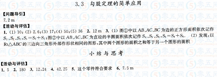 3.3勾股定理的簡單應(yīng)用學(xué)習(xí)與評價答案