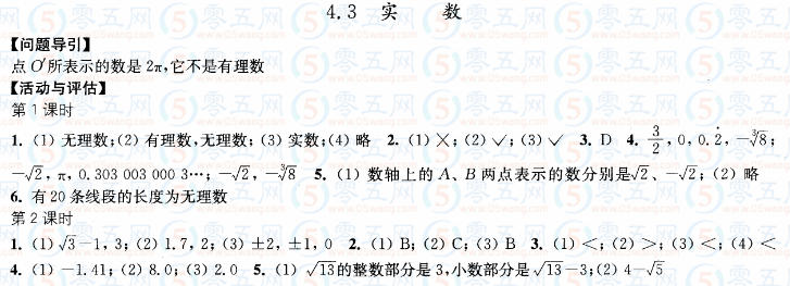 4.3實數(shù)學(xué)習(xí)與評價答案