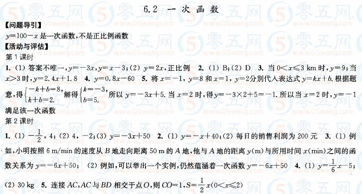 6.2一次函數(shù)學(xué)習(xí)與評(píng)價(jià)答案