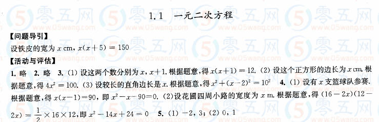 1.1一元二次方程學(xué)習(xí)與評價答案