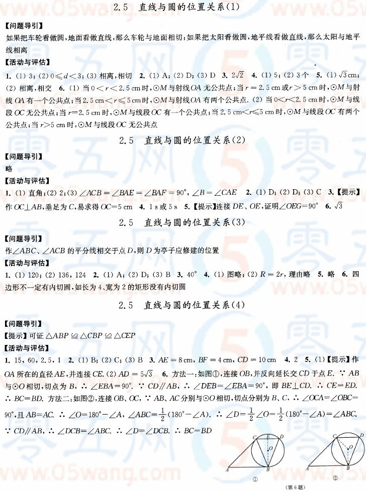2.5直線與圓的位置關(guān)系學習與評價答案