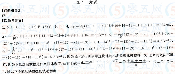 3.4方差學(xué)習(xí)與評價(jià)答案