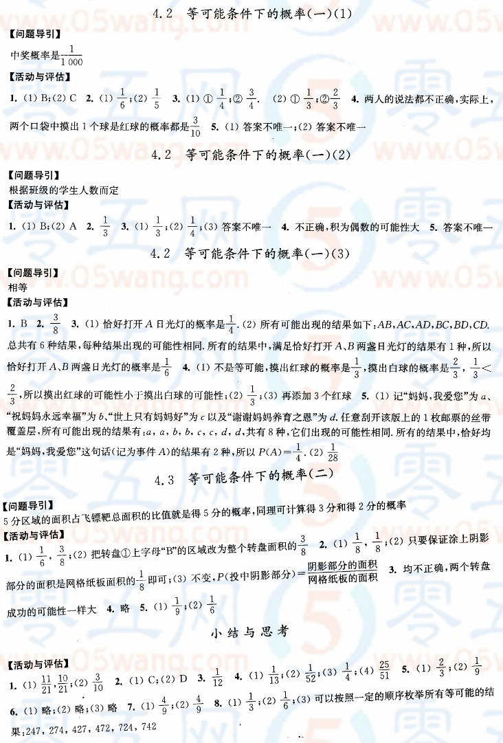 4.2等可能條件下的概率學(xué)習(xí)與評(píng)價(jià)答案