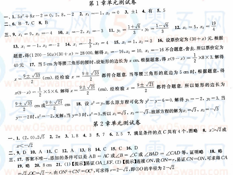 九上數(shù)學第1、2章單元測試卷學習與評價答案