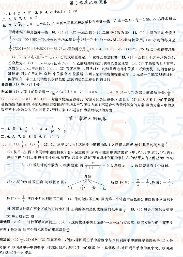 九上數(shù)學(xué)第3、4章單元測試卷學(xué)習(xí)與評價答案