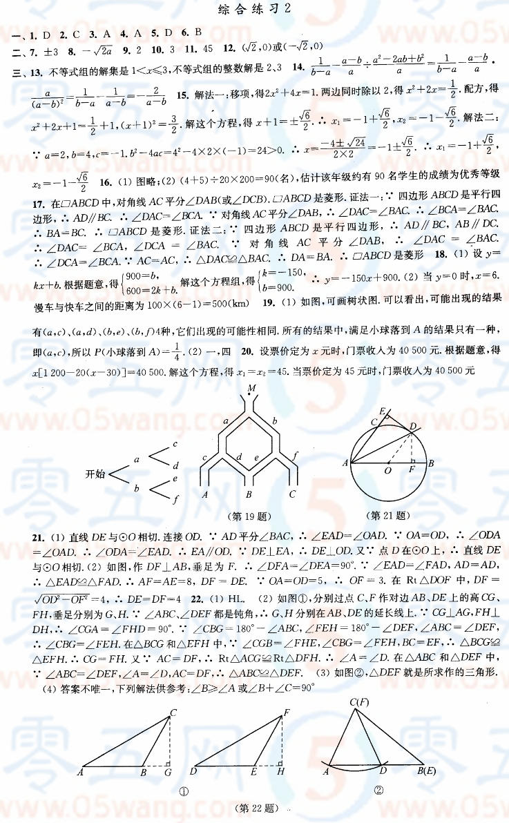 九上數(shù)學(xué)綜合練習(xí)2學(xué)習(xí)與評(píng)價(jià)答案