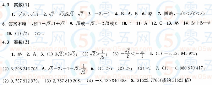 4.3實數(shù)同步練習(xí)答案