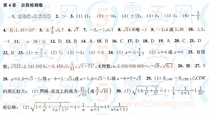 第4章自我檢測卷同步練習答案