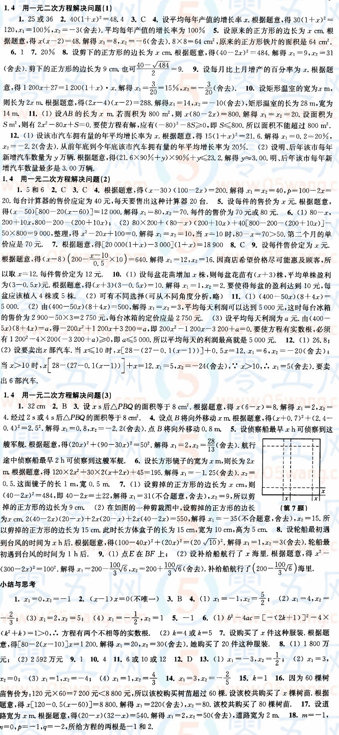 1.4用一元二次方程解決問(wèn)題同步練習(xí)答案