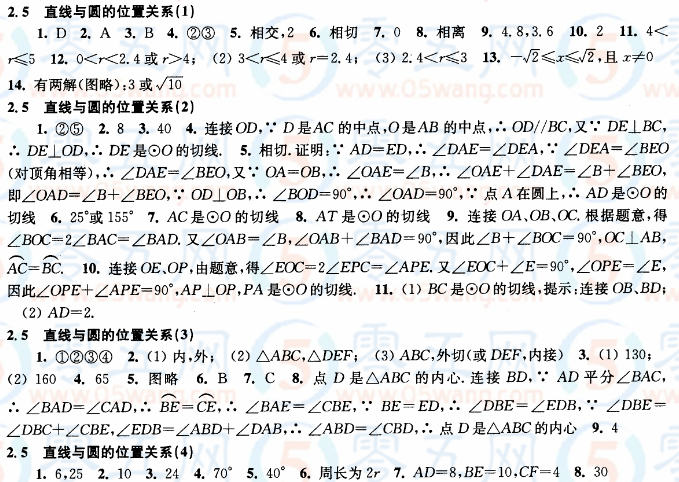 2.5直線與圓的位置關(guān)系同步練習(xí)答案