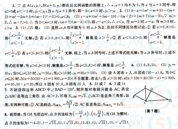 數(shù)學(xué)思想專題一分類同步練習(xí)答案