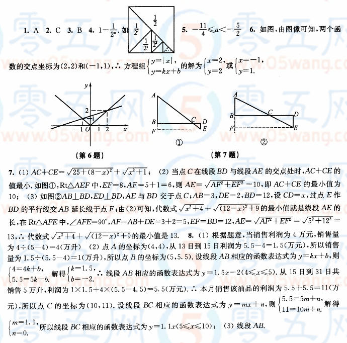 數(shù)學(xué)思想專題二數(shù)形結(jié)合同步練習(xí)答案