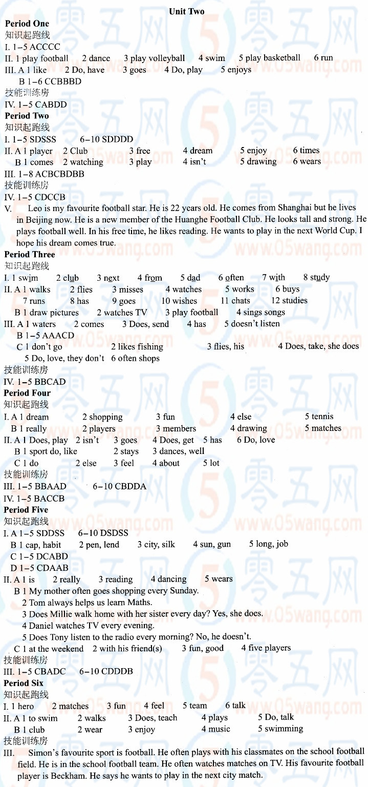 初一七年級上冊英語Unit2 Let’s play sports!學(xué)習(xí)與評價答案