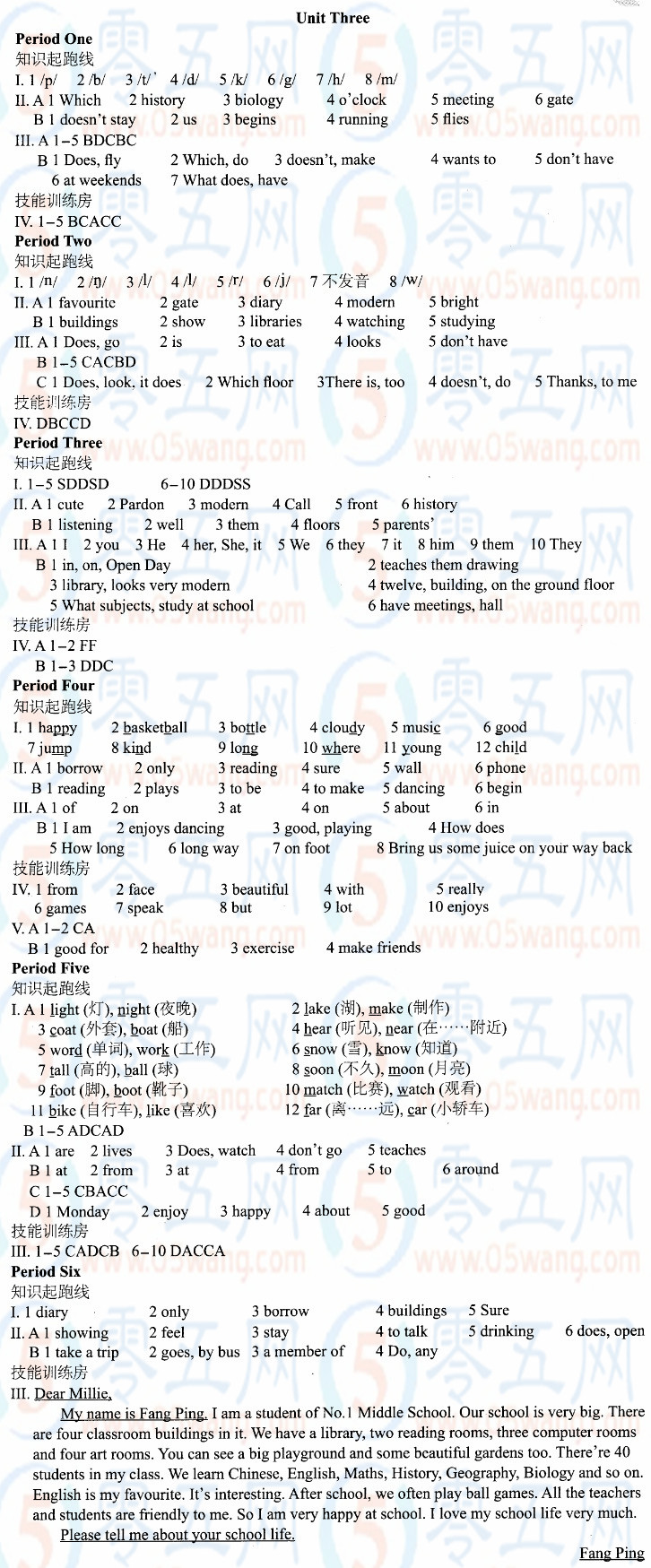 初一七年級上冊英語Unit3 Welcome to our school!學(xué)習(xí)與評價答案