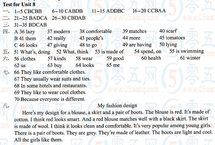 初一七年級上冊英語Test for Unit 8學(xué)習(xí)與評價答案