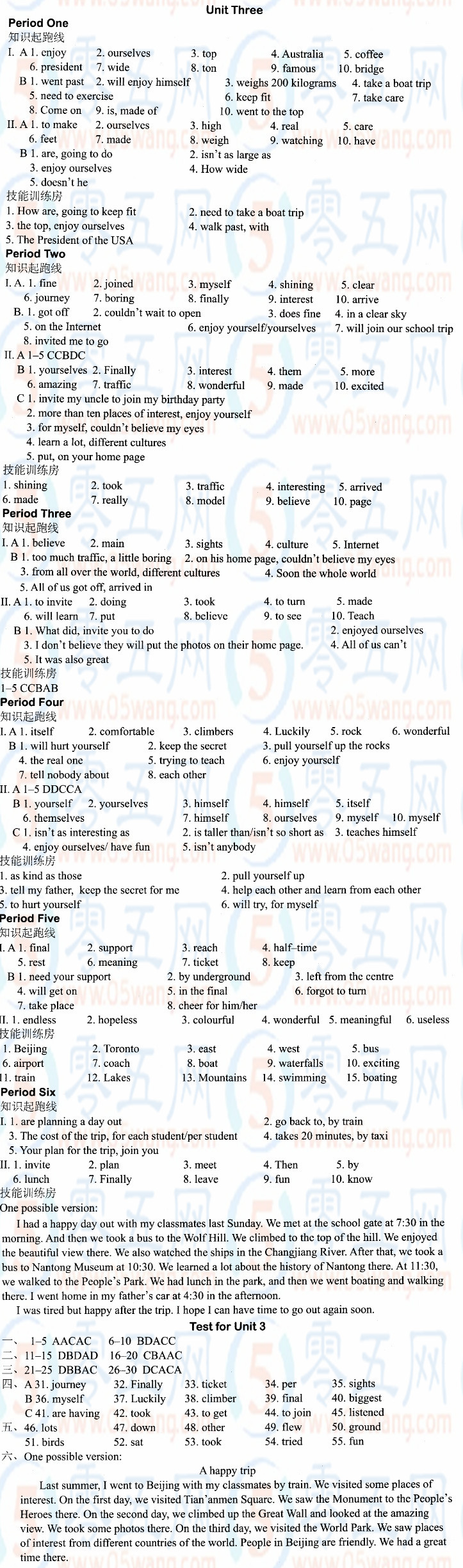 初二八年級上冊英語Unit 3 A day out學(xué)習(xí)與評價答案