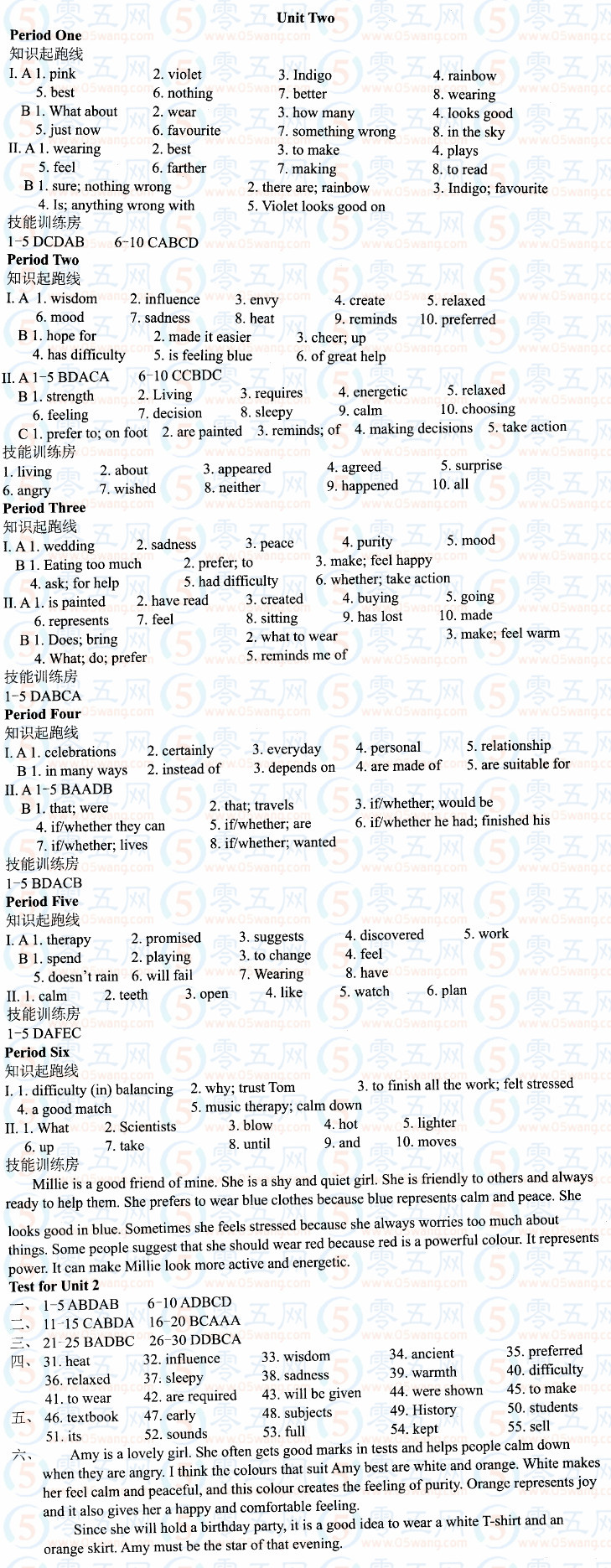 初三九年級上冊英語Unit2 Colours學(xué)習(xí)與評價答案
