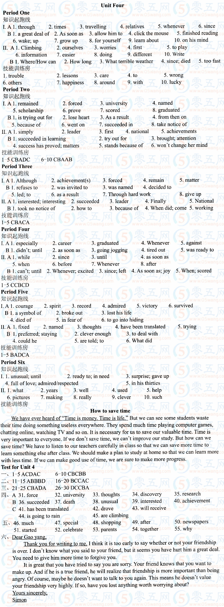 初三九年級上冊英語Unit4 Growing up學(xué)習(xí)與評價答案
