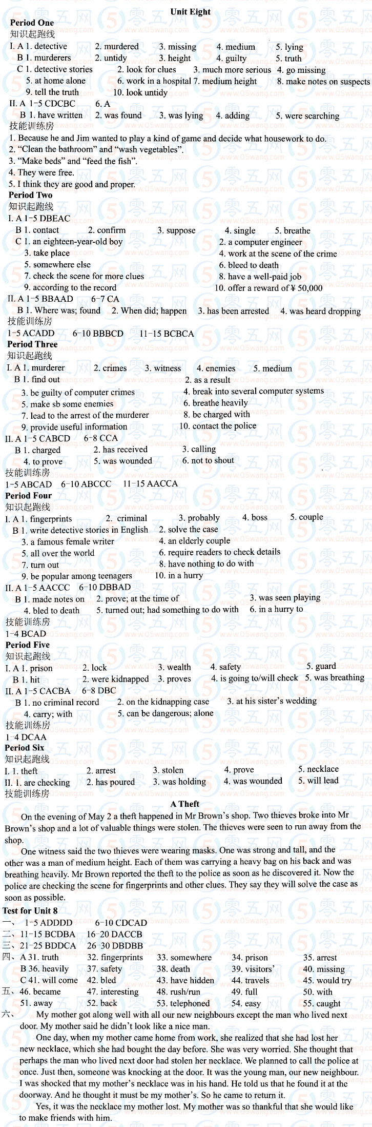 初三九年級上冊英語Unit 8 Detective stories學(xué)習(xí)與評價(jià)答案