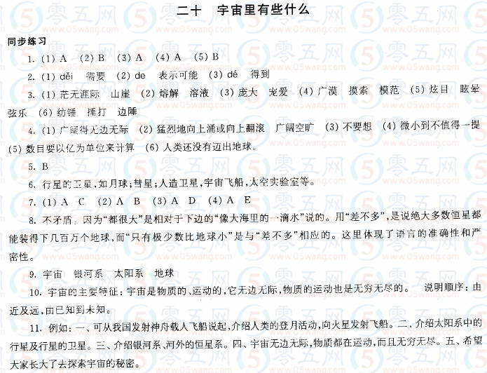 宇宙里有些什么學(xué)習(xí)與評價答案