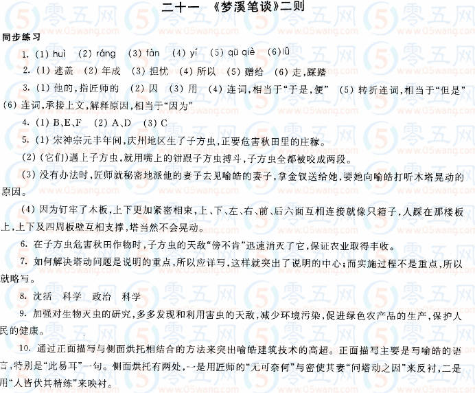 《夢(mèng)溪筆談》二則學(xué)習(xí)與評(píng)價(jià)答案