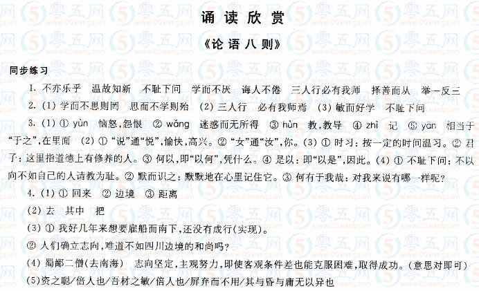 《論語(yǔ)八則》學(xué)習(xí)與評(píng)價(jià)答案