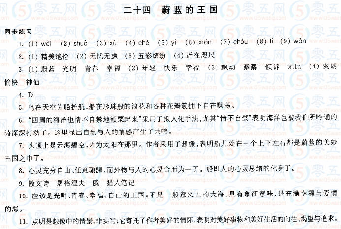 蔚藍(lán)的王國(guó)學(xué)習(xí)與評(píng)價(jià)答案