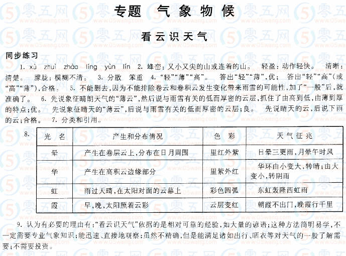 專題 氣象物候 學(xué)習(xí)與評(píng)價(jià)答案