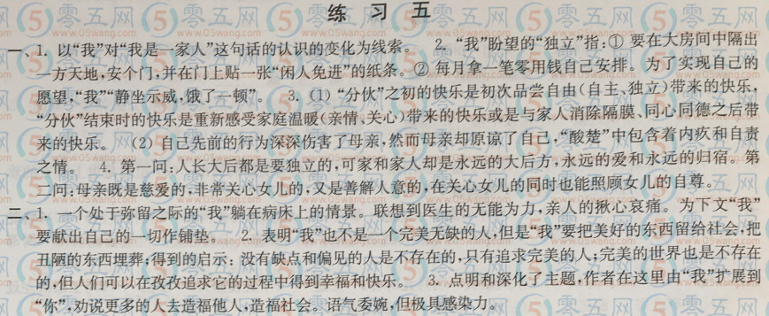 初中七年級寒假學(xué)習(xí)生活語文練習(xí)五答案