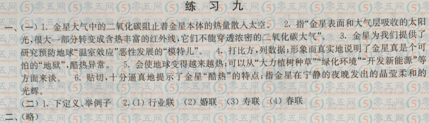 初中七年級寒假學(xué)習(xí)生活語文練習(xí)九答案