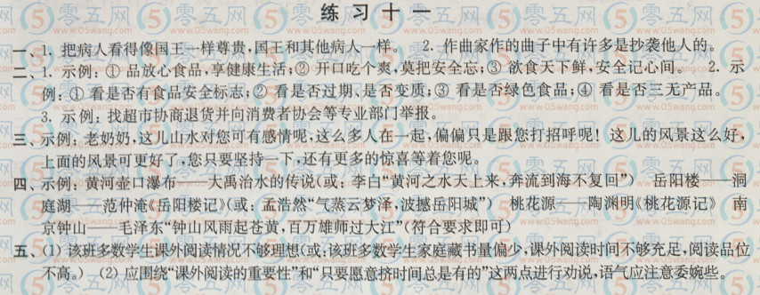 初中七年級寒假學(xué)習(xí)生活語文練習(xí)十一答案