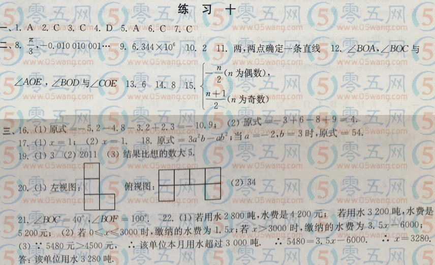 初中七年級寒假學(xué)習(xí)生活數(shù)學(xué)練習(xí)十答案