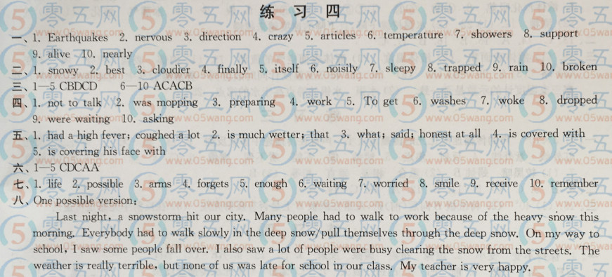 初中八年級(jí)寒假學(xué)習(xí)生活英語練習(xí)四答案