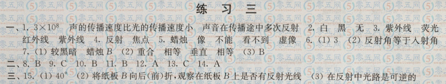 初中八年級寒假學習生活物理練習三答案