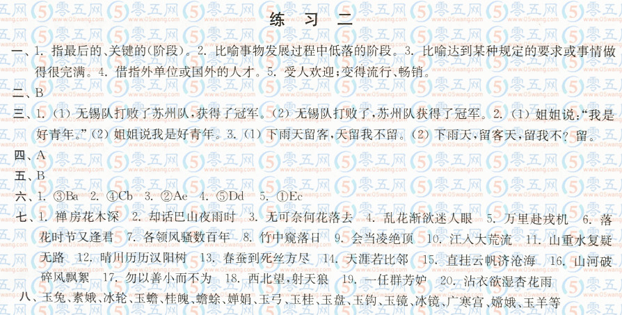 初中九年級(jí)寒假學(xué)習(xí)生活語(yǔ)文練習(xí)二答案