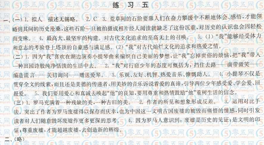 初中九年級(jí)寒假學(xué)習(xí)生活語(yǔ)文練習(xí)五答案