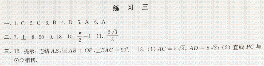 初中九年級(jí)寒假學(xué)習(xí)生活數(shù)學(xué)練習(xí)三答案